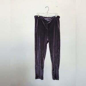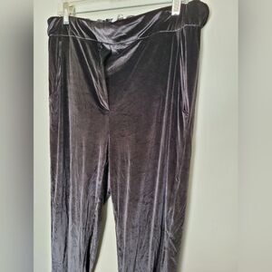 Elaine Kim Black Velvet Pants Straight Leg Trousers Pull On Elastic Waist XL
