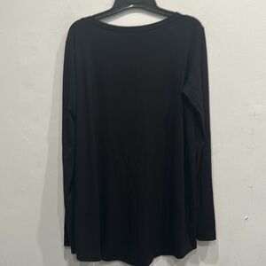 Elaine Kim Leather Trim Top Size medium Solid Black Tunic Long Sleeve Hi/Lo Hem