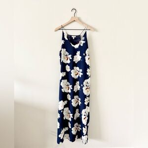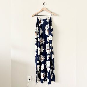 Elaine Rose Maxi Slip Dress in Blue White Floral Print - Size 6