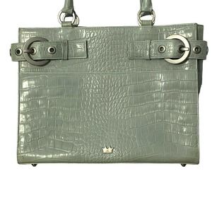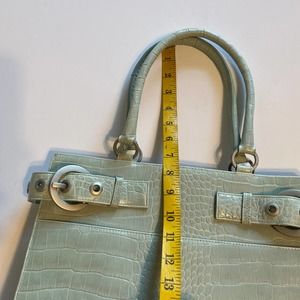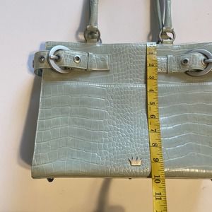 Elaine Turner Croc Embossed Satchel Womens Mint Green Leather Handbag Purse