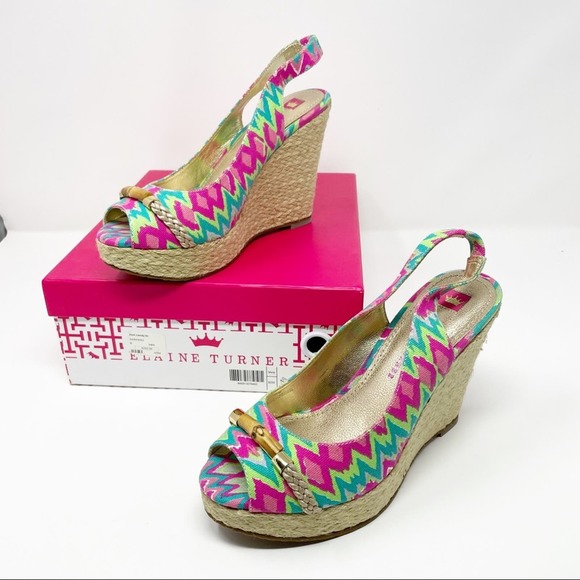 Elaine Turner Harper Batik Print Wedge Sandals 8
