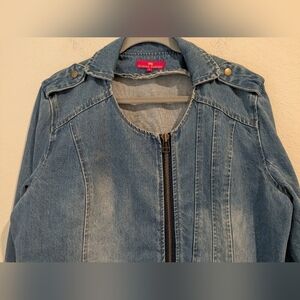 Elaine Turner Medium Wash Faded Asymmetric Full Zip Denim Jean Moto Jacket Biker
