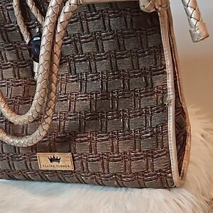 Elaine Turner Sophie Vertical Moroccan Espresso Brown Woven Handbag Large Tote in over all great condition. Some wear on the woven part and slight wear on the handles. Some staining in the inner pink lining.