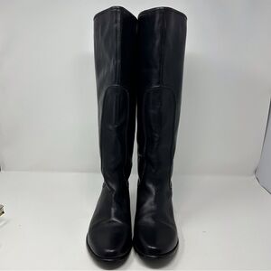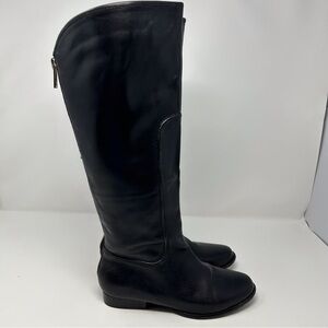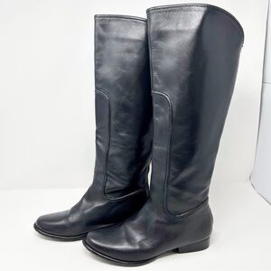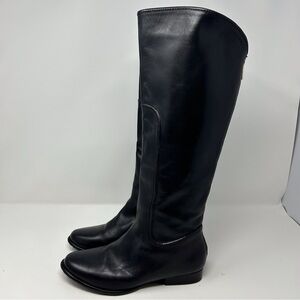Elaine Turner Tall Black Leather Knee High Gold Tone Back Zipper Boots Size 6.5