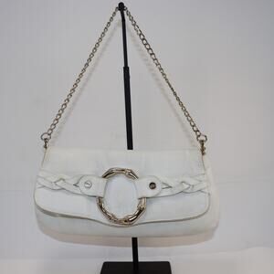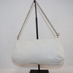 Elaine Turner White Leather Chain Shoulder Bag Bamboo Ring Accent