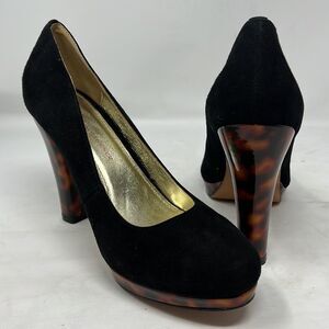 Elaine turner Designs Grace Black Suede Pumps w/ Tortoise Shell Print Platform