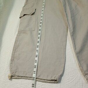 Elan 100% Linen Cargo Capri Pants Size M Womens Beige