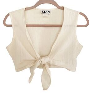 Elan 2 PC Set Cream Sleeveless Crop Top and Tie Front Wide Leg Pants Medium
