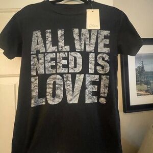 All We Need is Love! The message the world needs right now. This shirt is 100% lightweight cotton. Very comfortable and cute t-shirt. Brand new with tags!