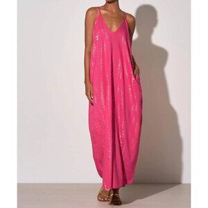 Elan Arrow Print Maxi Dress Women's M Medium Pink Gold Shimmer Relaxed Fit NEW