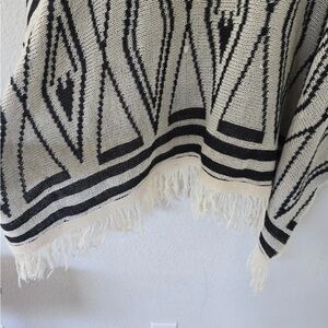 Elan Aztec Cardigan Reversible Mixed Print Womens S Fringe Wool Oversized Boho