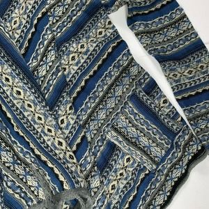 Elan Gray Blue White Open Poncho Tassels Acrylic Sweater Jacket Womens * Size Small * Good Condition