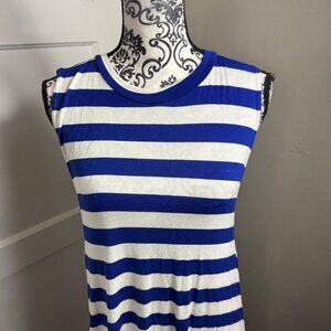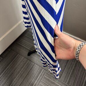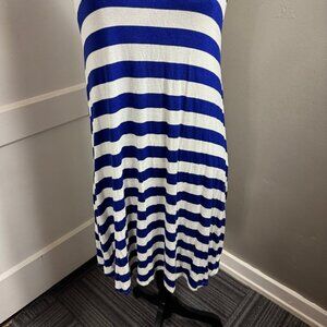 Elan Beach blue and white striped flow knee length dress with pockets. Size large