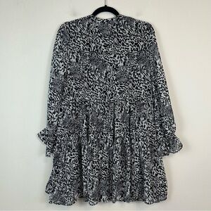 Elan | Black and White Animal Print Long Sleeve Tiered Mini Dress Small NWT