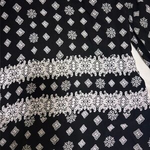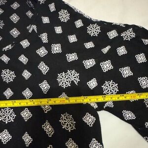 Elan Black and White Boho Pattern Open Shoulder Shirt