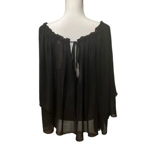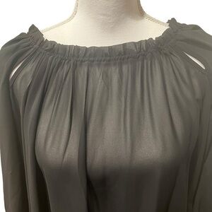 Elan Blouse Chiffon Tunic Top with Adjustable Cut Out Neckline Size Small Black