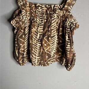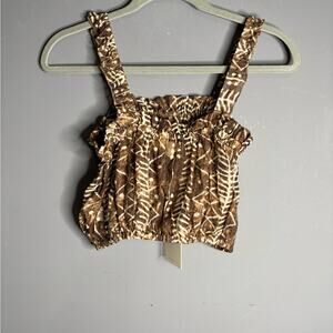 Elan Brown and White Printed Cropped Tank With Ruffle Straps Size Small
