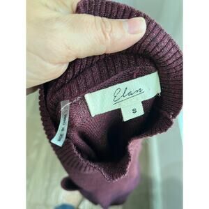 Elan Burgundy Metallic Cut Out Turtleneck Long Sleeve Sweater Knit Pullover Sz S