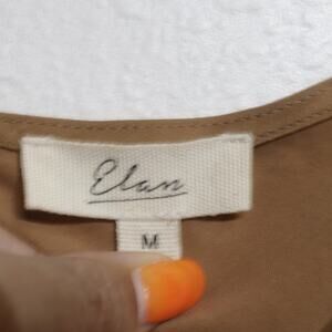 Medium brown blouse by Elan in excellent preowned condition. Approximately 21" length, 18" bust.