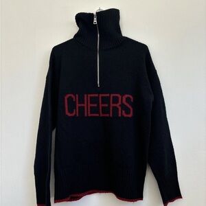 Elan Charcoal 1/4 mock neck ‘CHEERS’ holiday sweater