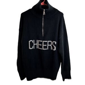 Elan Cheers Sweater Quarter Zip Womens Size XL Black Gray Silver
