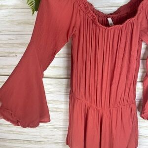 Elan Coral Textured Off Shoulder Bell sleeve Romper