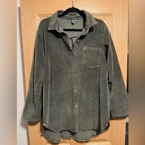 Elan Corduroy Button Front Raw Edge Hem Shirt Jacket