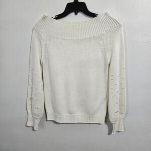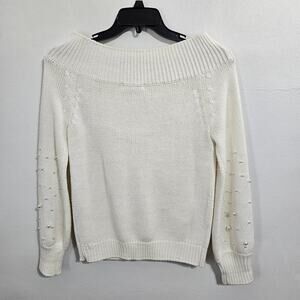 Elan Cream Balloon Sleeve Off the Shoulder Sweater. Pearls on sleeves. Size Small. 100% acrylic. Excellent Condition!