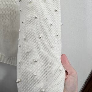 Elan Cream Balloon Sleeve Off the Shoulder Sweater. Pearls on sleeves. Size S