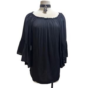 Elan Dark Boho Ruffle Sleeve Blouse O/S 100% Rayon Black Witchy Whimsygoth Fairy