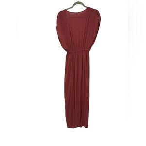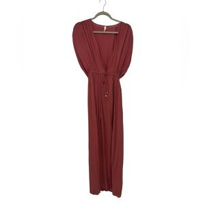 Elan Deep V-neck Cover-up Maxi Dress In Pink/ Red Rose, Size Small