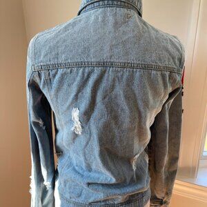 Elan Denim Jacket with Embroidered Floral Embellishments Size S