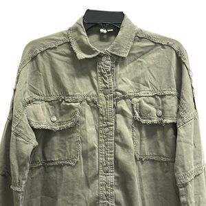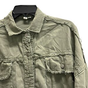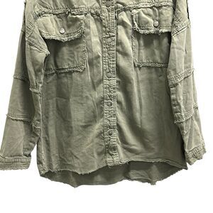 Elan Dolly Green Cotton Distressed Shirt Jacket All You Need Is Love Size XS