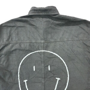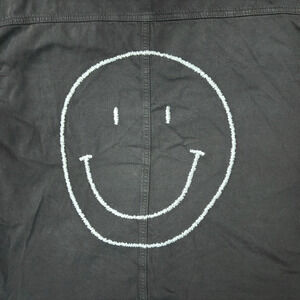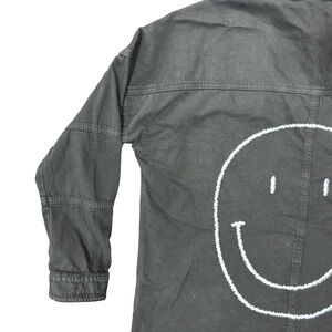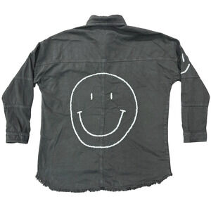 Elan Dolly Jacket Shirt Top Button Fray Women's Extra Small Black Smiley Shacket