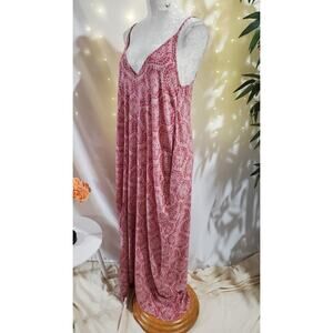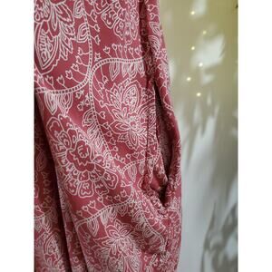 Elan Double V-Neck Boho Asymmetrical Maxi Dress Size S Floral Paisley Pockets Pink