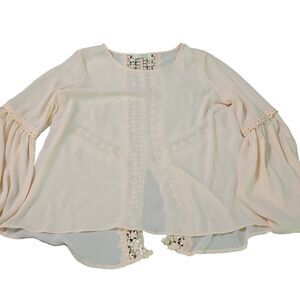 Elan Elegant Womens Sheer Blouse Pink Size Medium 100% Polyester Bell Sleeve