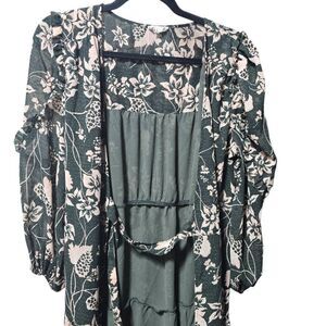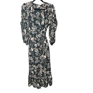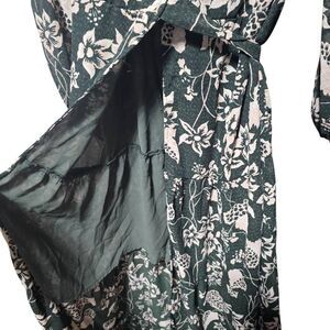 Details: half sleeve, true wrap, built in lining as shown, v neck, peek a boo leg slit, lightweight, maxi, flowy, ruffle hem