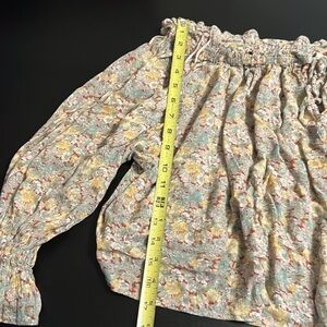 Chic floral off-shoulder blouse with a ruffled neckline. Perfect for casual outings.