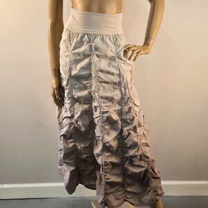 Elan Gathered Ruched Cotton Maxi Skirt Size S Boho Festival Variegated Taupe