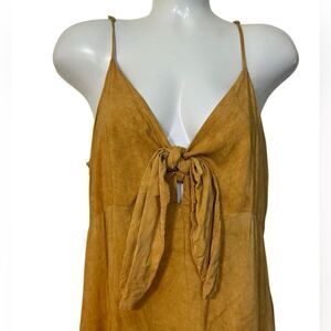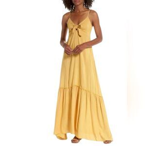 Elan Golden Yellow Tie Front Tiered Maxi Dress