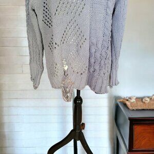 Elan Gray Cable Knit Distressed Long Sleeve Sweater in Size Medium