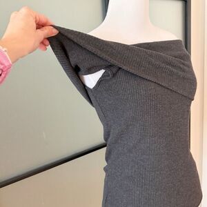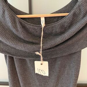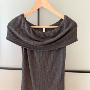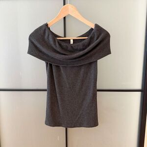 Elan Gray Off Shoulder Knit Ribbed Sweater Top Size Medium Anthropologie NWT USA