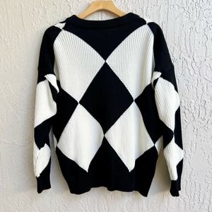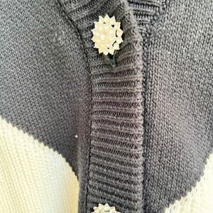 Color black and white; silver sparkly buttons. Dropped shoulder