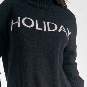 Black Knit Sweater with Silver Iridescent "Holiday" on chest