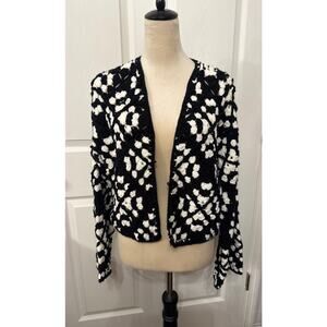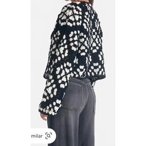 Elan Kylee Macrame Crochet Cropped Cardigan in Black/White, S