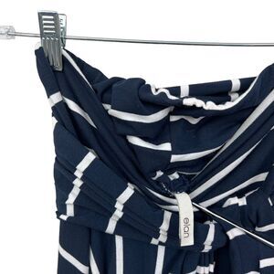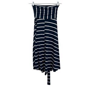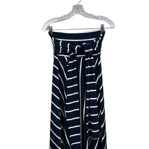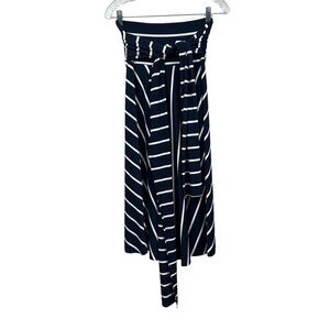 Elan Maxi Skirt Striped Blue White A Line Flare Tie Waist Stretch Women Size M