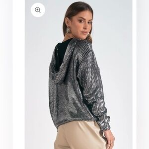 Elan Metallic Cable Knit Hoodie Envy by Melissa Gorga Women’s Size M