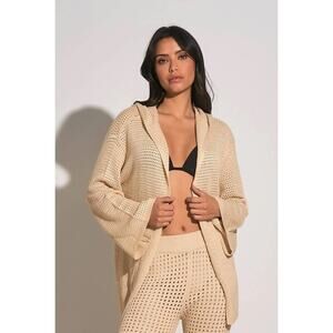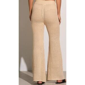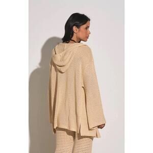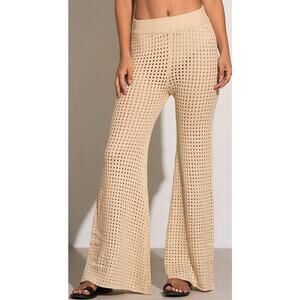 Stylish crochet knit set, perfect for layering and casual wear. This set includes a long, hooded cardigan with flared sleeves and wide-leg pants, both featuring an open crochet pattern. The relaxed fit and breathable design make it ideal as a beach cover-up or comfortable loungewear. Wear this set to a resort, poolside, or for relaxed summer evenings. New with tags.