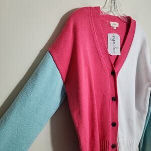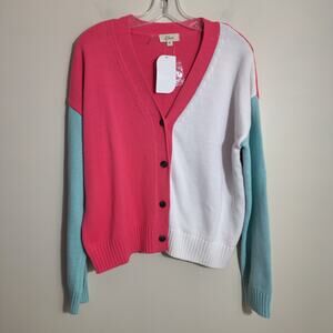 Elan NWT oversized color block v-neck button front cardigan sweater woman's sz M