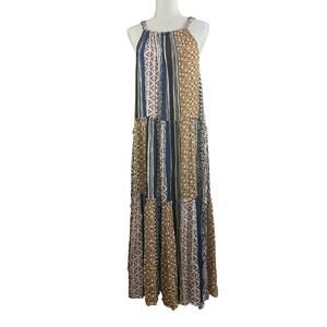 Elan New Western Tiered Maxi Dress Small Halter Tie Neck Bohemian Southwestern
